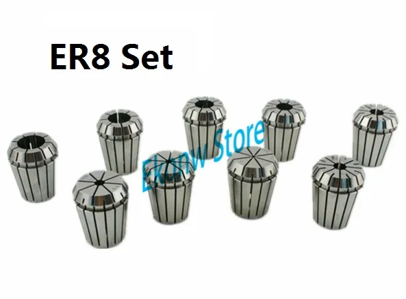 [32807273532] 10PCS/SetER8 SPRING COLLETS INCLUDE: 1mm,1.5mm,2mm,2.5mm,3mm,3.5mm,4mm,4.5mm,5mm,3.175mm ACCURACY GRADE: 0.008mm If you want to buyotherER Colletclick here! If you want to buyER Spannerclick here!